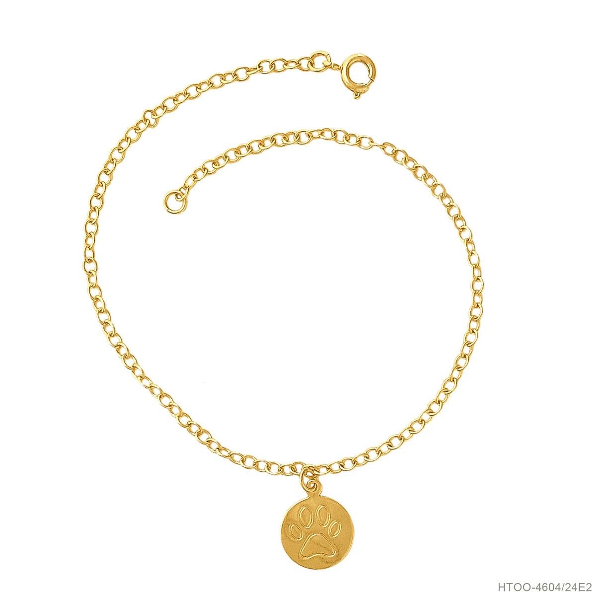 Tornozeleira corrente elo português com medalha pata de cachorro folheado a ouro.: